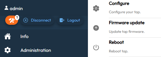 - Click on Configuration | Update Tap Firmware, and select your Firmware file.