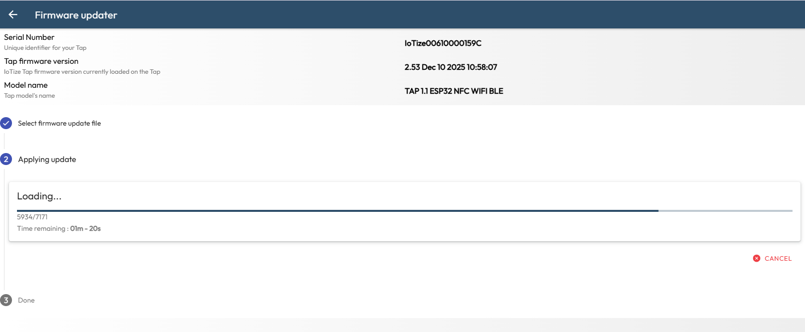 - Once it is done, check again the firmware version in the Tap.