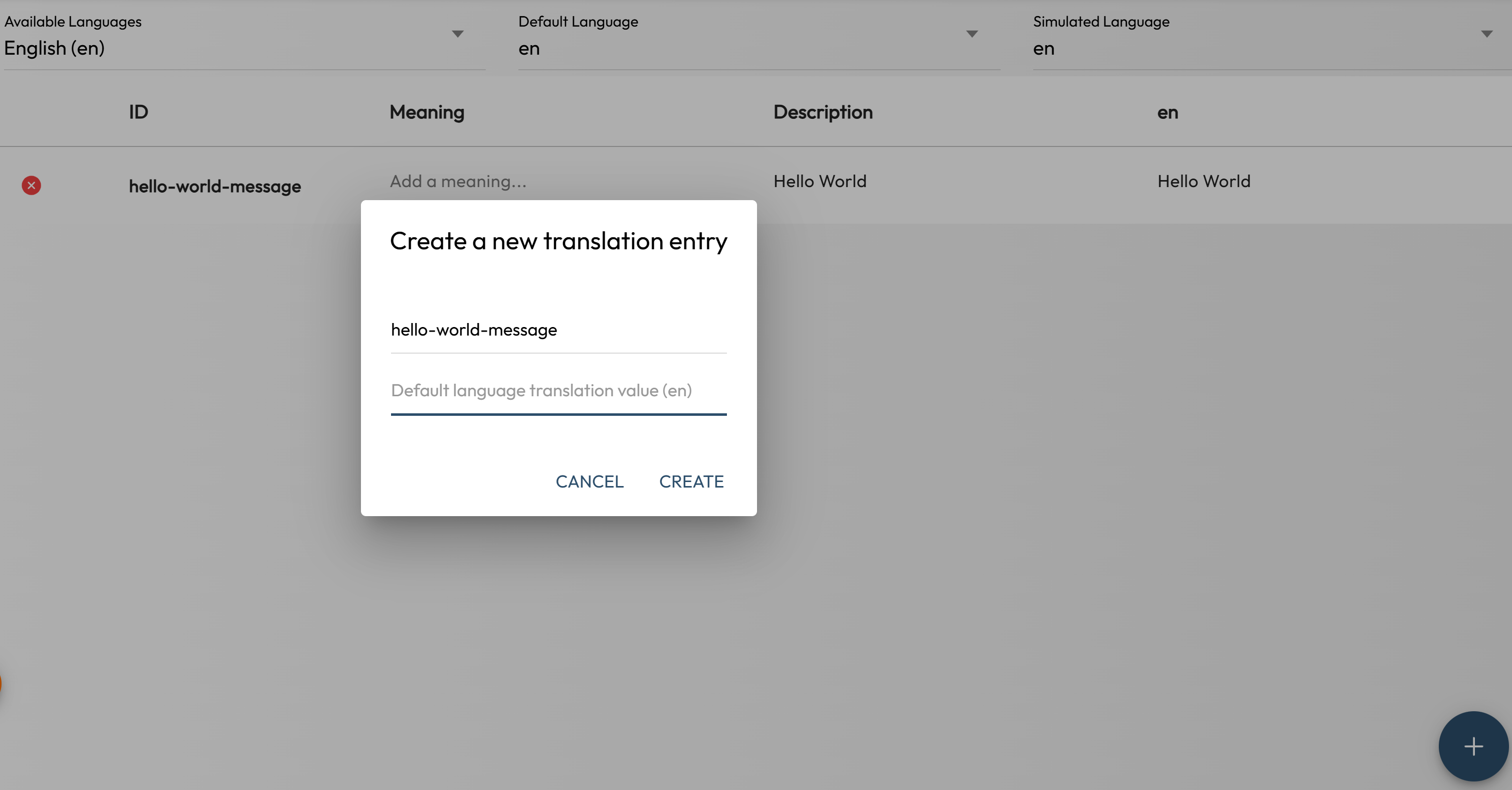 You can now edit the new entry that is displayed in the translation table. Add a translation description or other languages translations.