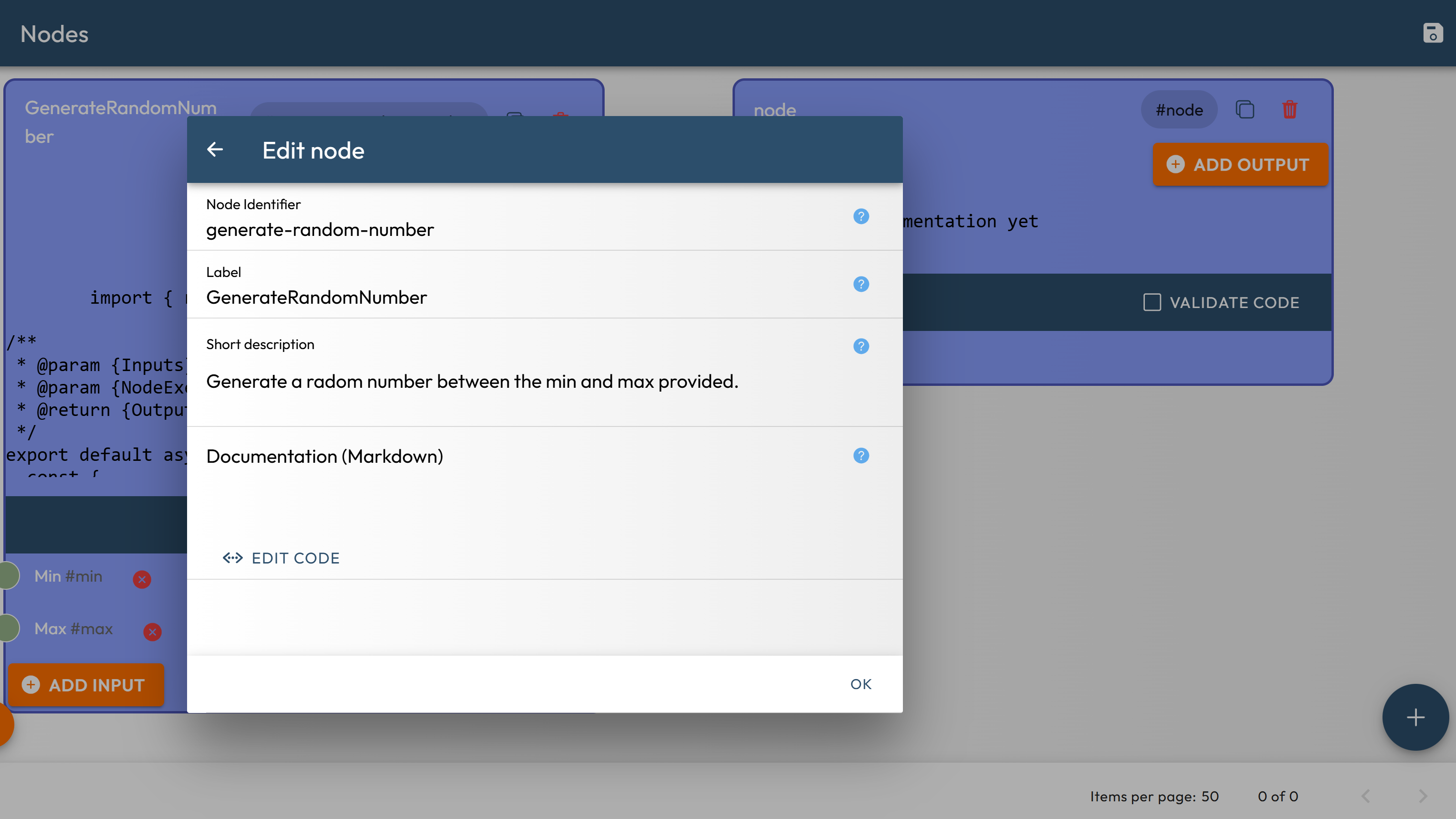 Node Editorpage). There is one subdirectory for each node:node-idsubfolder named with the node identifier- implementation.mjs text file that contains the node implementation (JavaScript code)