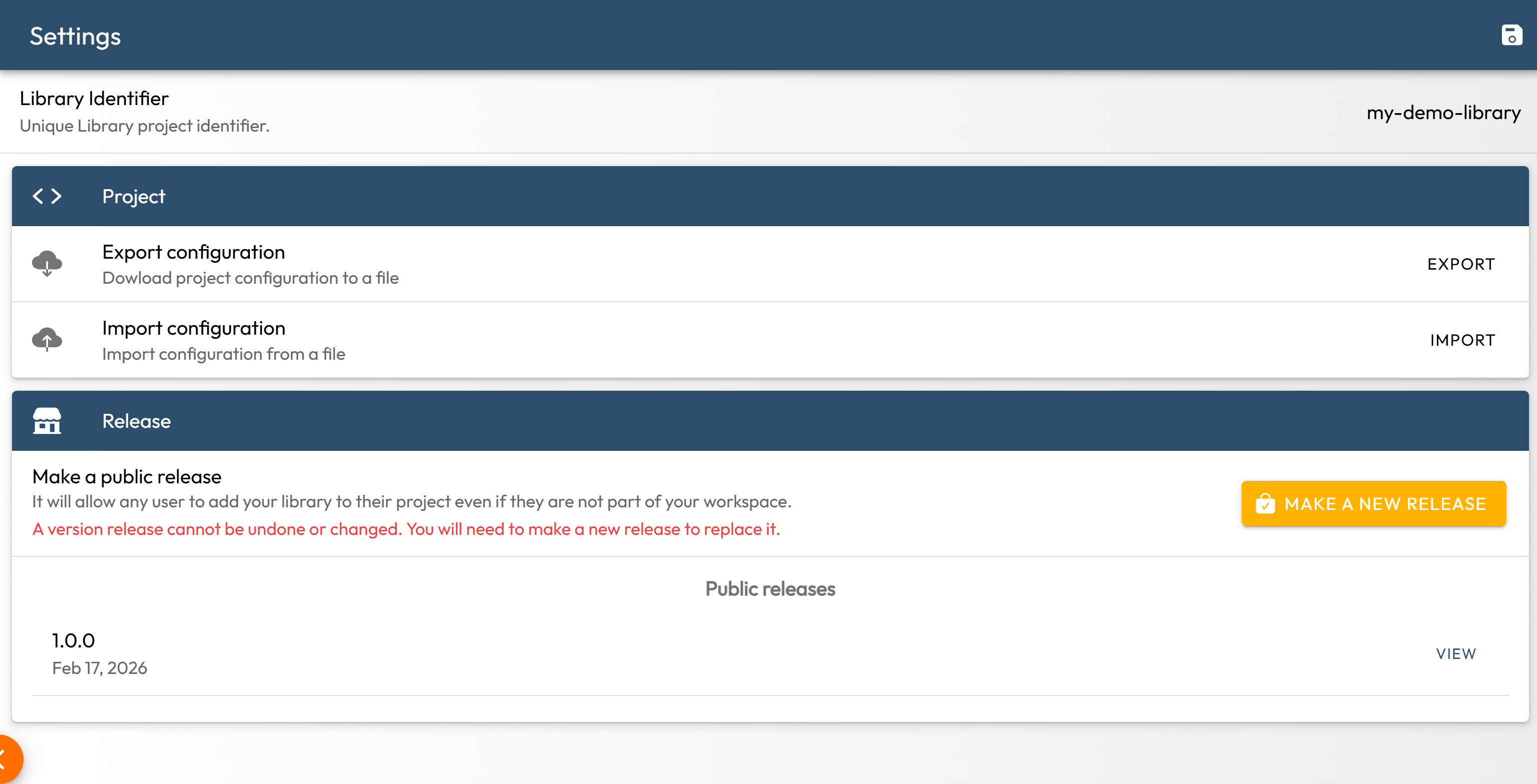 Once done, you can zip the library again and import it using the IMPORT button or share the ZIP file with another workspace.