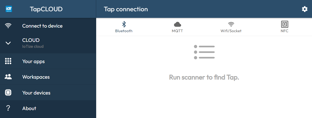 When you launch Tap Manager on a mobile, the 'Run Scanner' page opens: